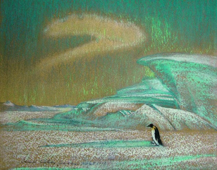David Abbey-Paige (1901–1978) was the official expedition artist with Admiral Richard Evelyn Byrd’s second Antarctic expedition (1933–1935). The artist labored practically fully in pastels in Antarctica to stay away from the problem of freezing paints. His drawings are a celebration of polar mild and coloration.